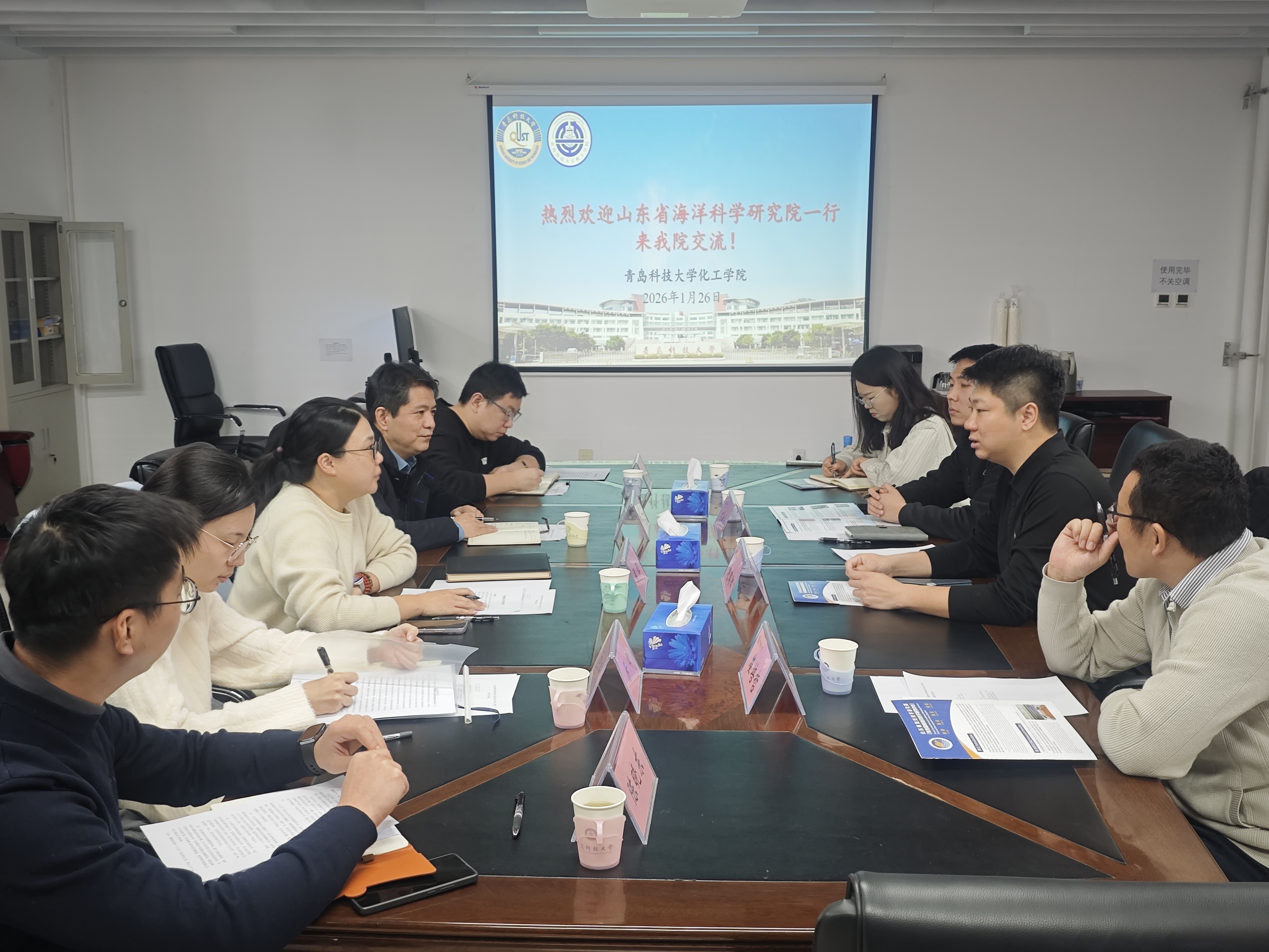 2026年1月26日,山东省海洋科学研究院人力资源部副部长侯钰一行访问青岛科技大学化工学院,双方就深化研究生联合培养合作进行座谈交流,并达成重要共识。青岛科技大学化工学院副院长赵瑞阳、崔培哲及联培生导师代表出席本次会议。
