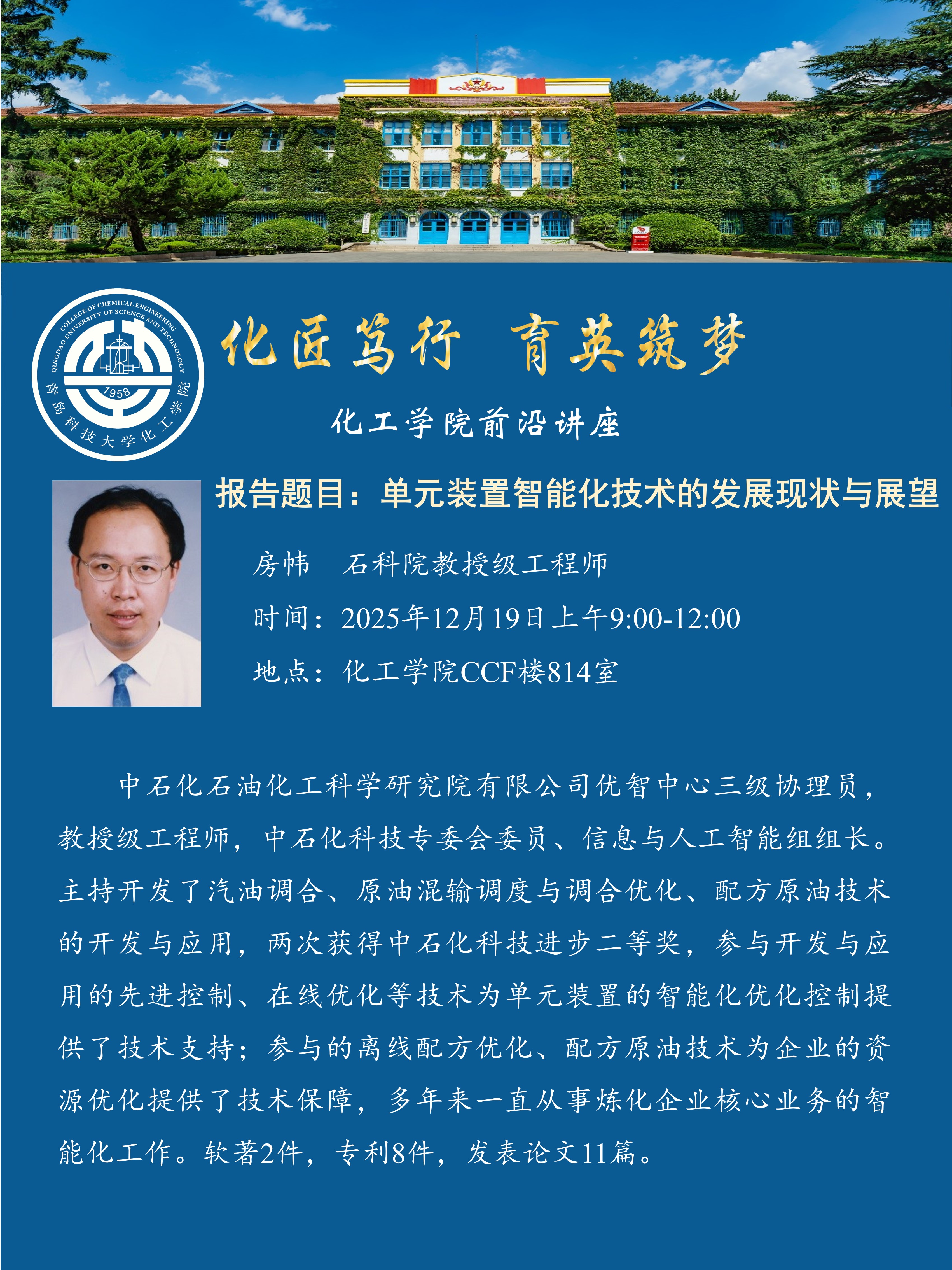 化工学院学术报告——房帏:单元装置智能化技术的发展现状与展望