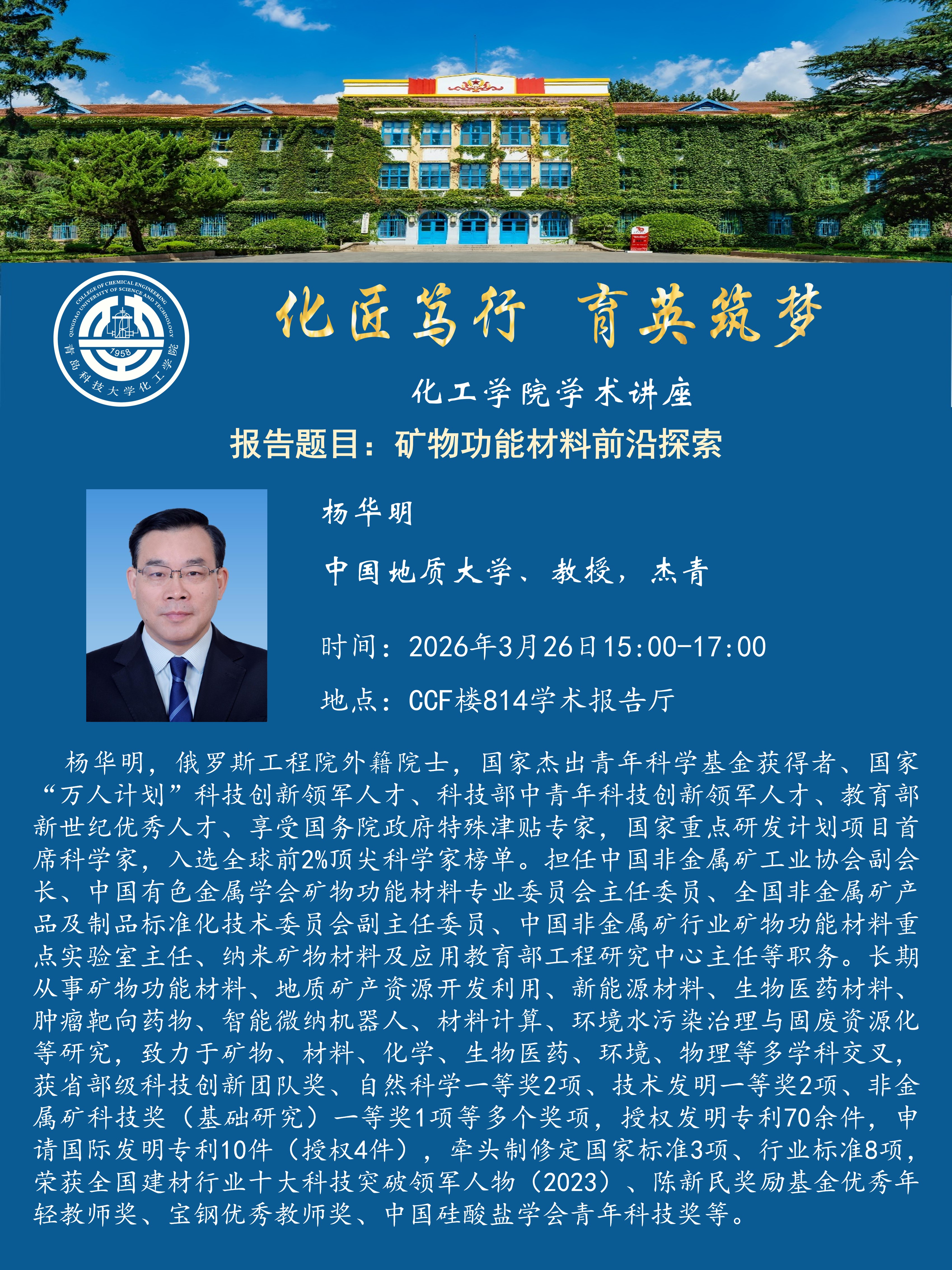 化工学院学术报告——杨华明:矿物功能材料前沿探索