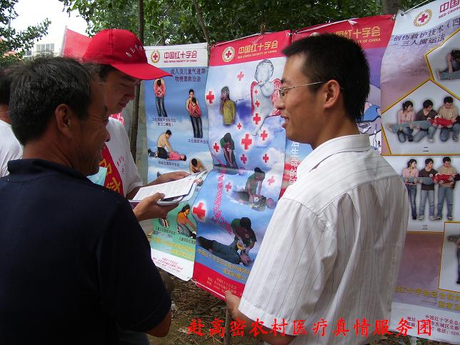 为使晦涩难懂的医疗知识变得具体直观,,团队专门把中国红十字总会印发的初级救护讲解图从青岛带入高密市双羊镇。志愿者在田老师的带领下主要从心肺复苏、儿童异物梗喉、创伤急救四项技术三个方面给村民讲解了处理此种突发事故的步骤流程。