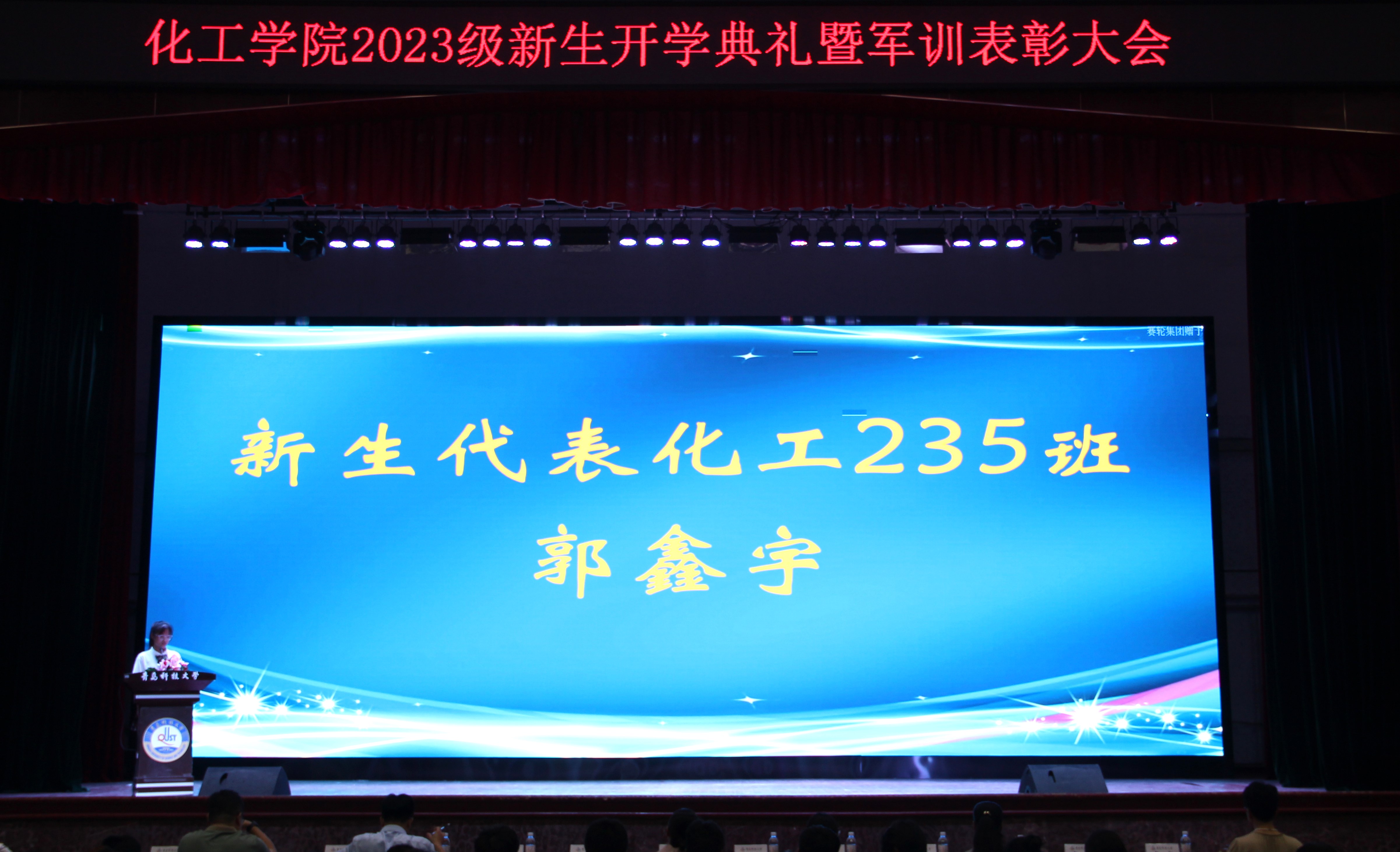 9月19日下午,化工学院2023级新生开学典礼暨军训表彰大会在四方校区西礼堂隆重举行。化工学院党委书记孙明媚、化工学院优秀校友代表2014届毕业生豪迈化工技术研究院化工工艺室主管初杨、副院长王许云、党委副书记兼副院长李春家、化工学院院长助理高传慧、教师代表张媛媛,以及化工学院各教研室教师代表、全体辅导员、2023级新生班主任代表,全体2023级新生等参加了本次大会。大会由化工学院团委书记秦洪庆主持。