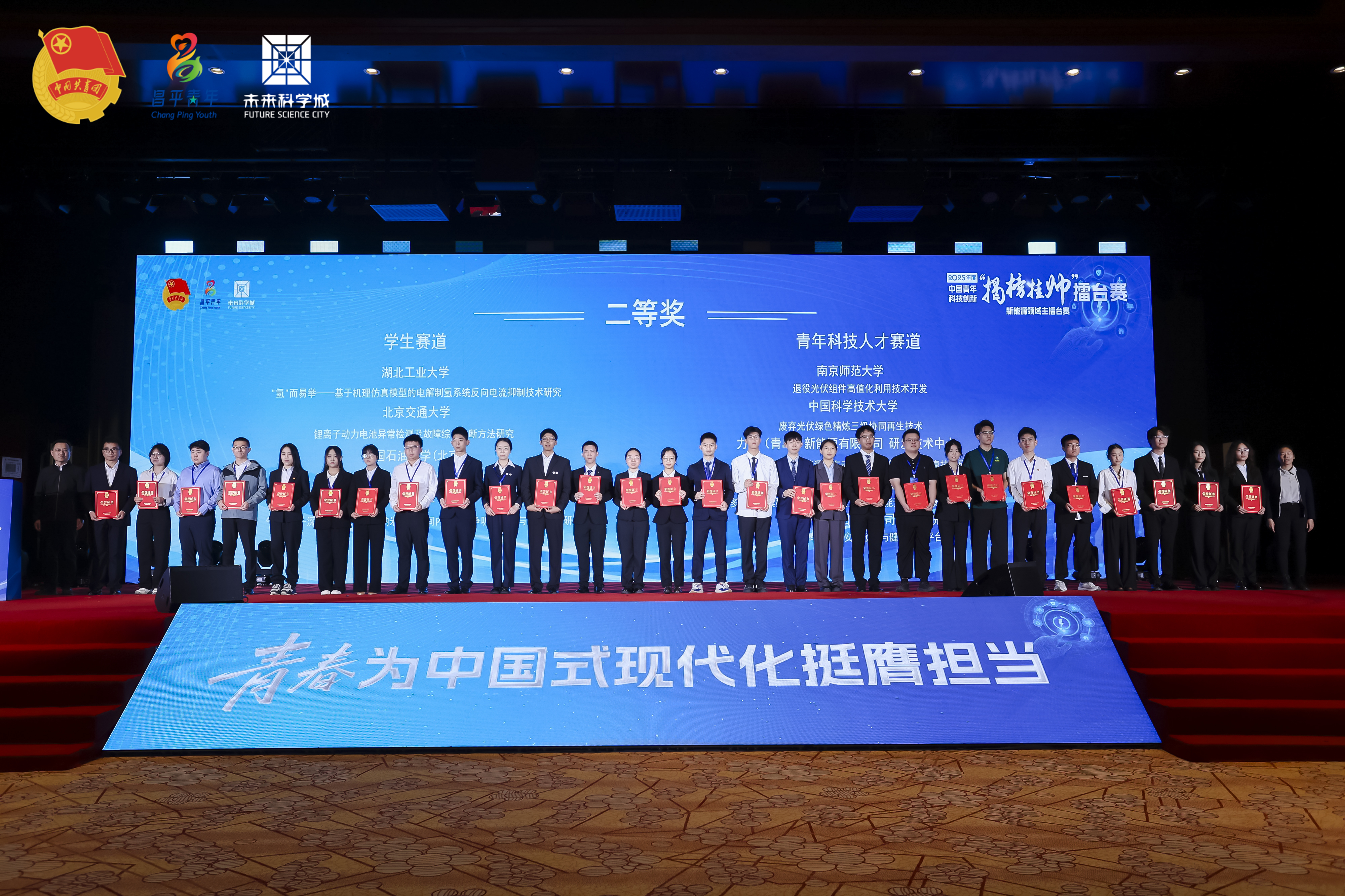 10月12日至14日,由共青团中央、中国科协、教育部、中国社会科学院、全国学联共同主办的2025年度中国青年科技创新“揭榜挂帅”擂台赛“新能源领域”终审主题赛事在北京昌平举行。由化工学院高珊珊、宋晓明老师指导,邹沂霖、黄嘉诺等同学负责的项目《纸日可待——生物质基高强度全降解超疏水纸地膜领航者》荣获国家级二等奖,展现出化工学子在新能源材料领域的创新实力与责任担当。