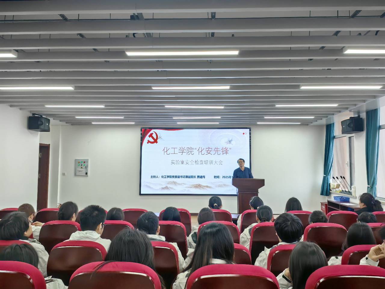 为深入贯彻落实校园安全工作的相关精神,充分发挥学生党员的先锋模范作用,筑牢实验室安全防线,11月13日下午,化工学院研究生第二党支部在CCF814报告厅进行“化安先锋”党员志愿服务实验室安全培训。培训会由学院党委副书记兼副院长贾建闯主讲,支部全体党员参加。