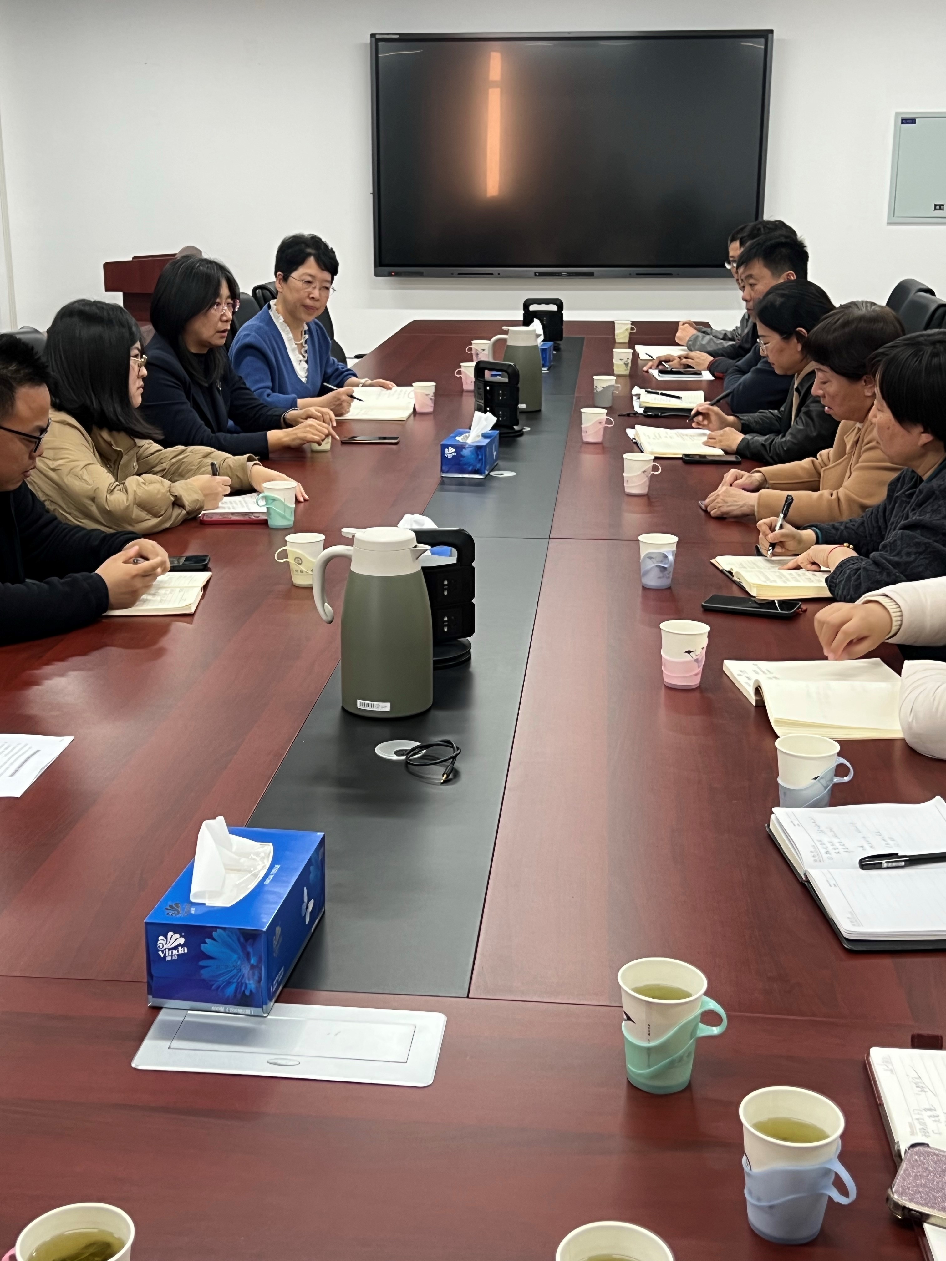 高传慧副院长汇报了近年来化工学院在教材建设、教学竞赛和团队发展方面取得的进展,并重点介绍了数字教材建设的推进情况和遇到的问题。参会教师也结合自身教学实践,积极提出想法和建议。李金红副校长和王许云主任认真听取发言,不时与老师们互动交流,现场气氛热烈。