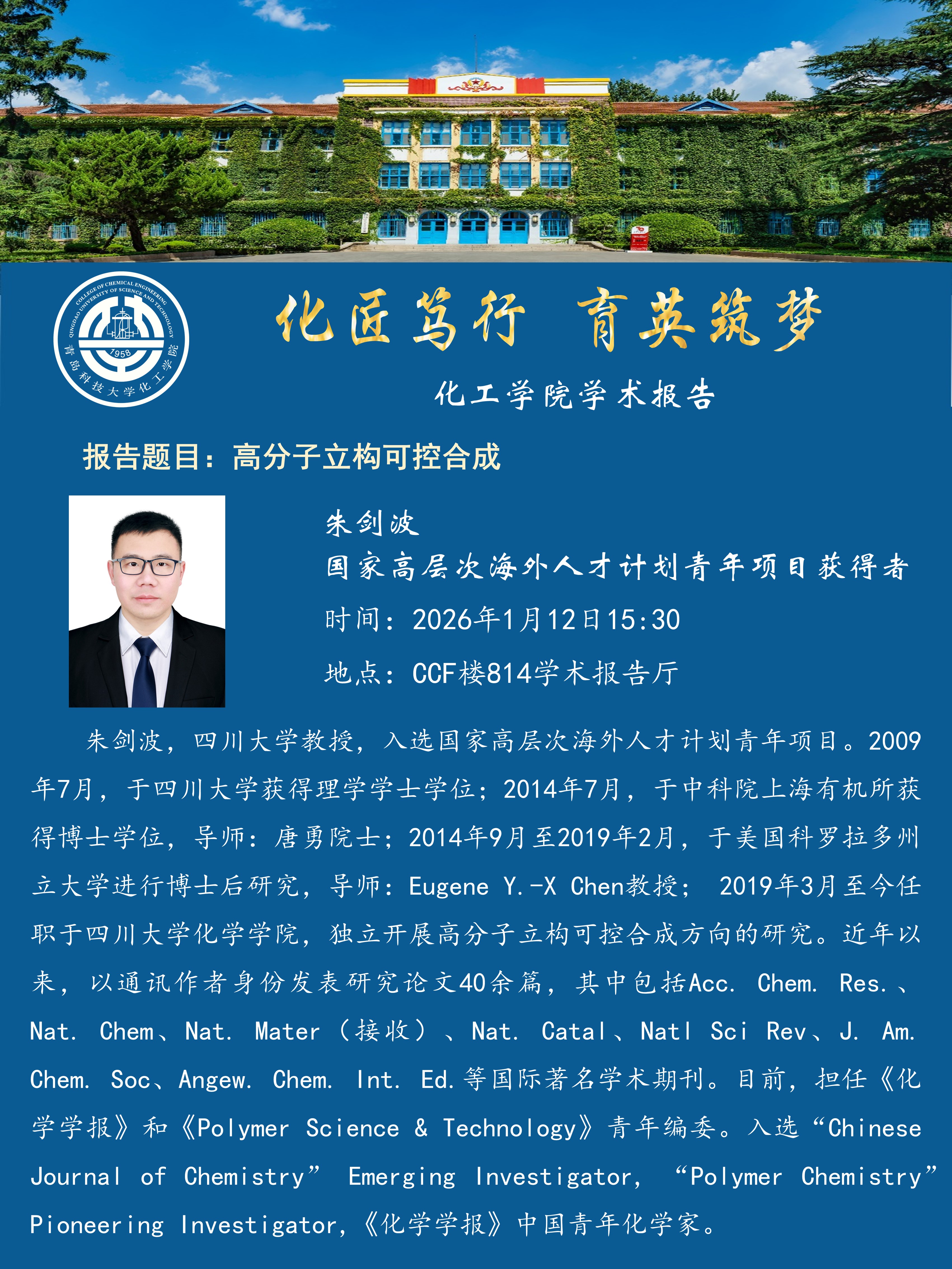 化工学院学术报告——朱剑波:高分子立构可控合成