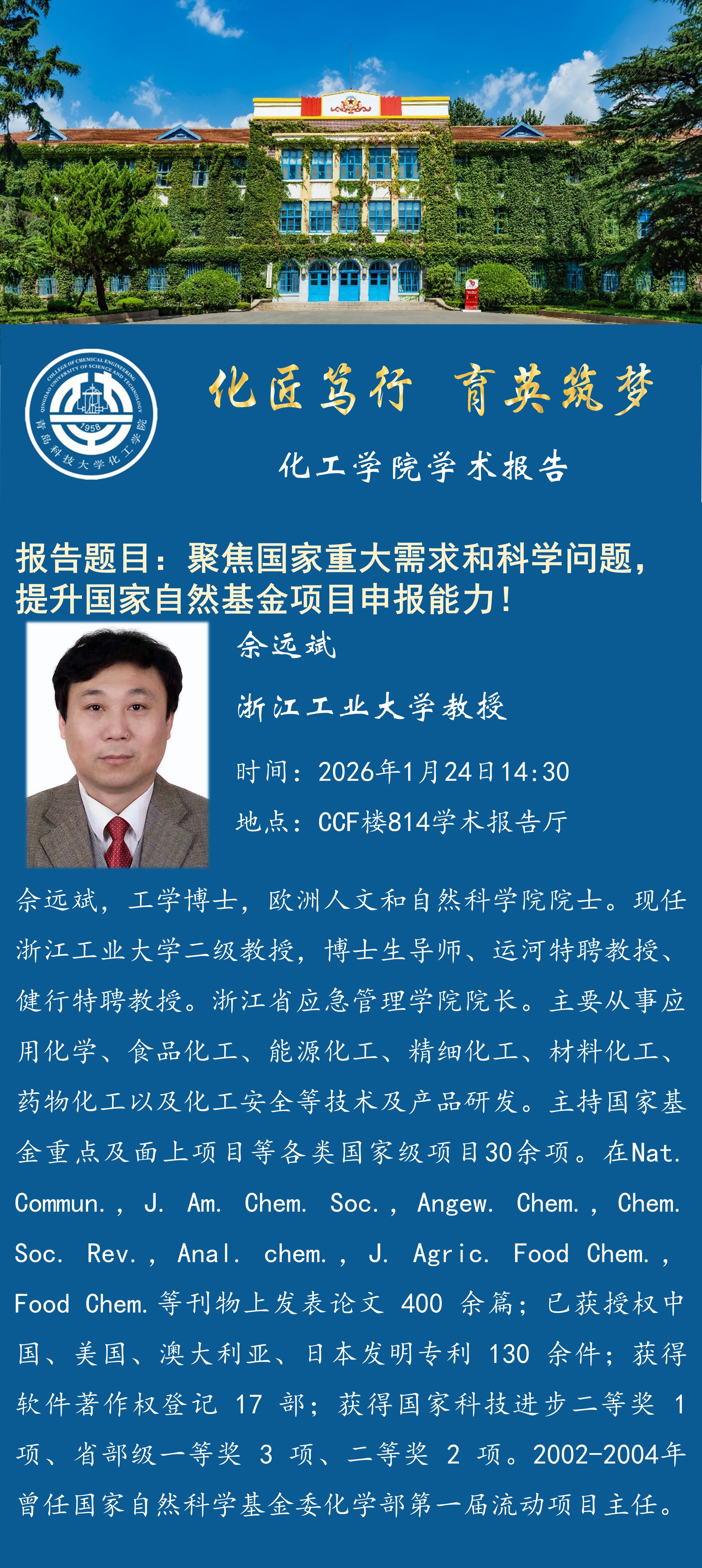 化工学院学术报告——佘远斌:聚焦国家重大需求和科学问题,提升国家自然基金项目申报能力