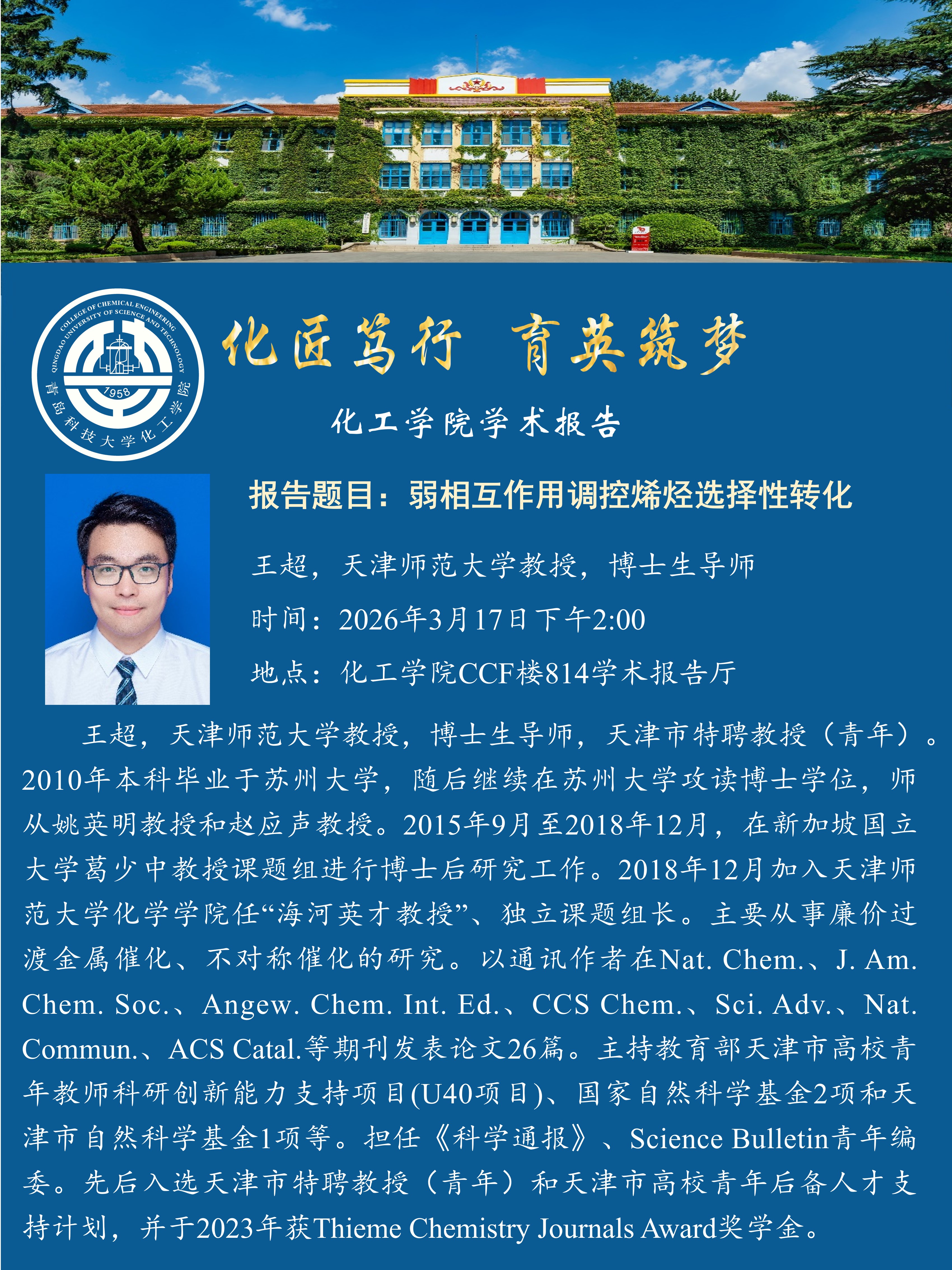 上一条:青岛科技大学化工学院2026年招收攻读硕士学位研究生一志愿考生复试通知 下一条:化工学院学术报告——葛少中:Cobalt-Catalyzed Selective Multi- Borylation of Unsaturated Hydrocarbons
