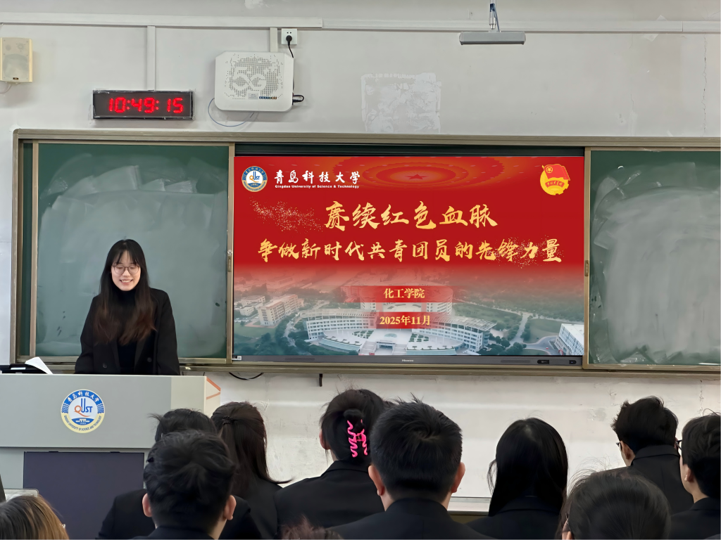 11月11日,化工学院“赓续红色血脉争做新时代共青团员的先锋力量”主题青马工程培训班在一教101举行。化工学院青马工程学员、入团积极分子、新发展团员、各班团支部书记参加,24级辅导员孙希玲授课。